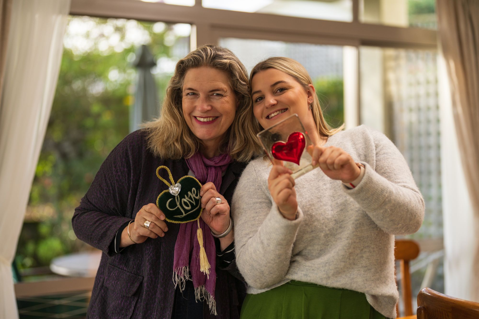 Mother Daughter Holding Hearts