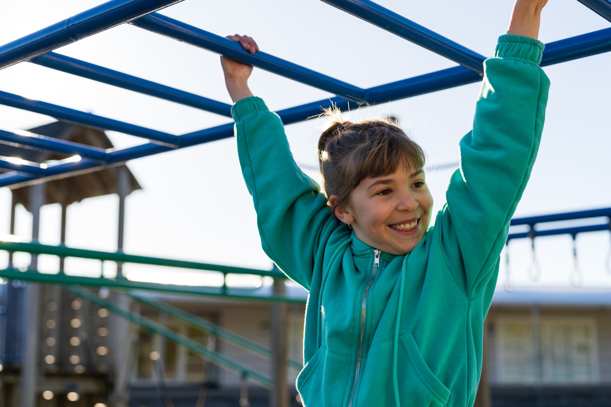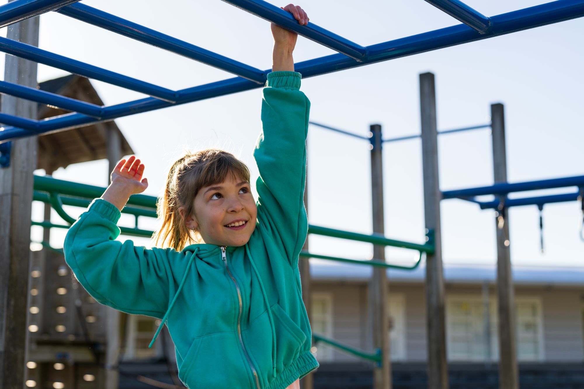 Girl Playing On Monkey Bars